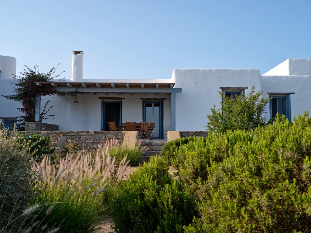 Pergola-covered patio, offering shade and wind protection, outdoor dining table which comfortably seats 6.